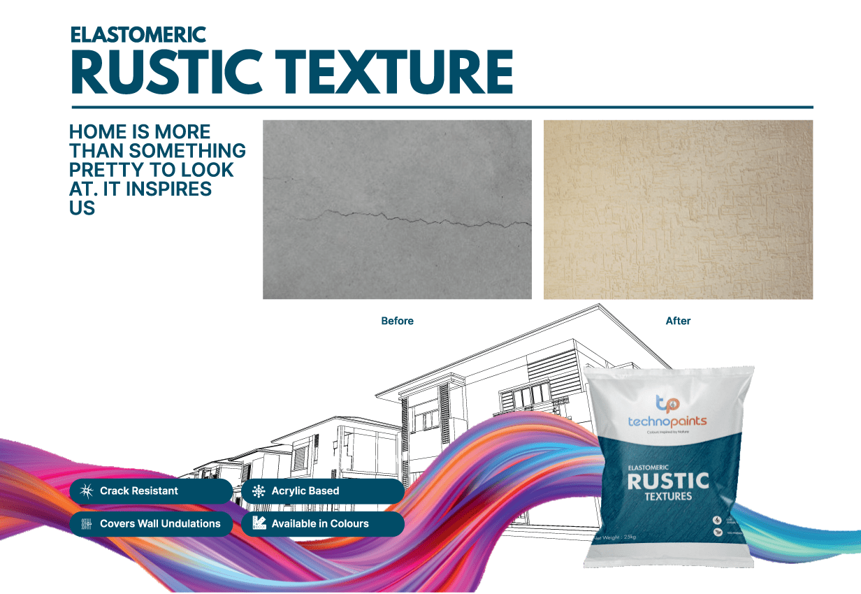 Elevate your walls with Techno Paints Elastomeric Rustic Texture. This innovative product adds a unique, textured finish while providing superior protection. Its crack-resistant formula hides minor imperfections, and its acrylic base ensures durability. Available in a range of colors, Rustic Texture brings a touch of elegance and sophistication to any space.